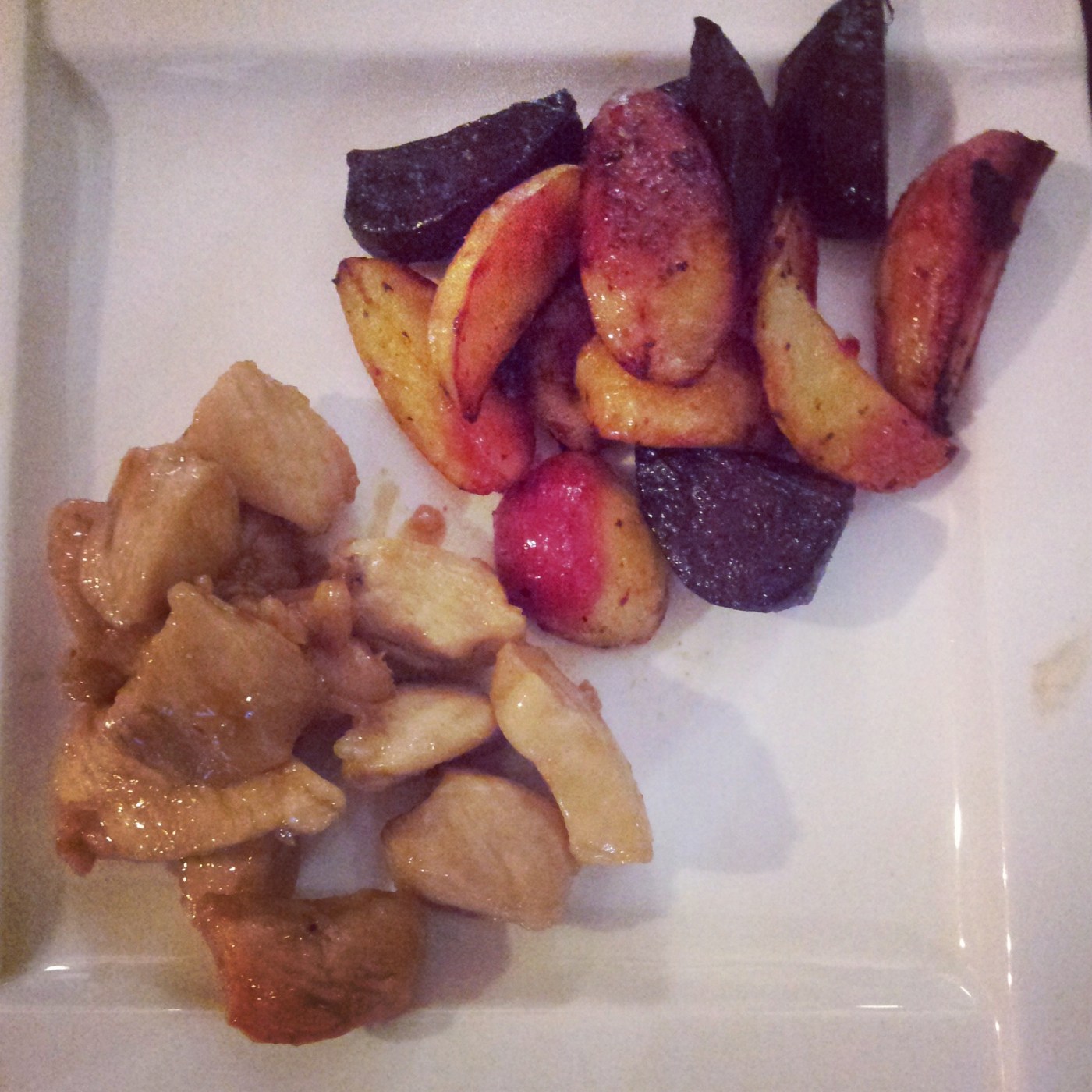 Przepis dla wielbicieli potraw z mięsa na słodko: kurczak w glazurze z syropu klonowego. Delikatne kawałki piersi kurczaka duszone w sosie o słodko – pikantny smaku. Syrop klonowy oprócz słodyczy ma również lekko korzenny aromat, dzięki któremu smak nie jest płaski. U nas kurczak podany z pieczonymi ziemniakami i burakami.