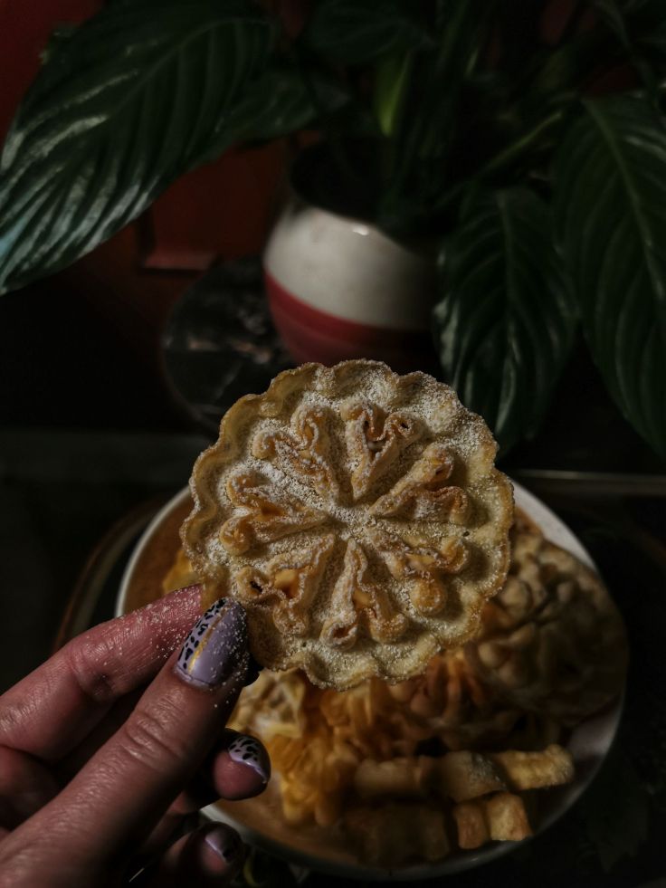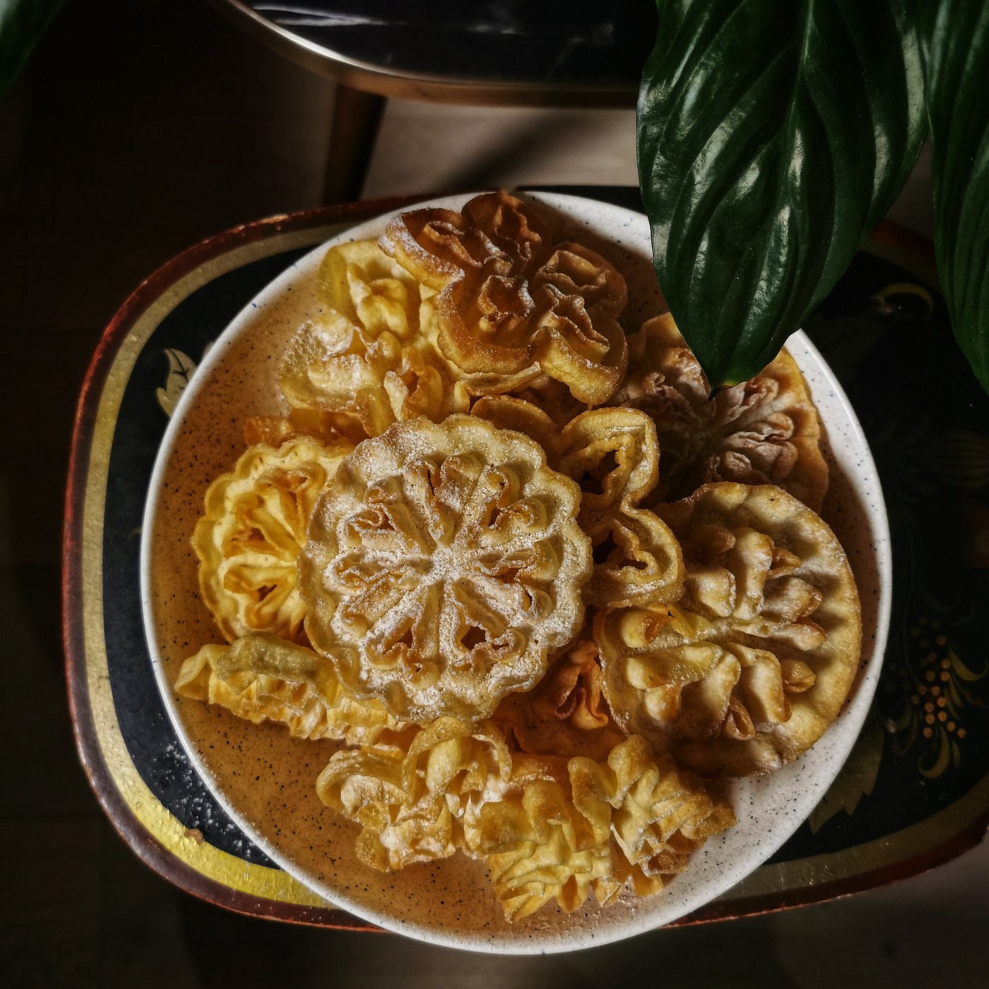Pyszne ciasteczka, smażone na głębokim oleju. Dla mnie smak dzieciństwa 🙂 Ciasto jest podobne do naleśnikowego więc jest banalnie proste. Do przygotowywania tych ciastek będziecie potrzebować specjalnego przyrządu – może macie taki w domu (lub zachował się u mamy lub babci); jeśli nie to nie jest to duży wydatek i warto poszukać w internecie (foremki do rozetek).