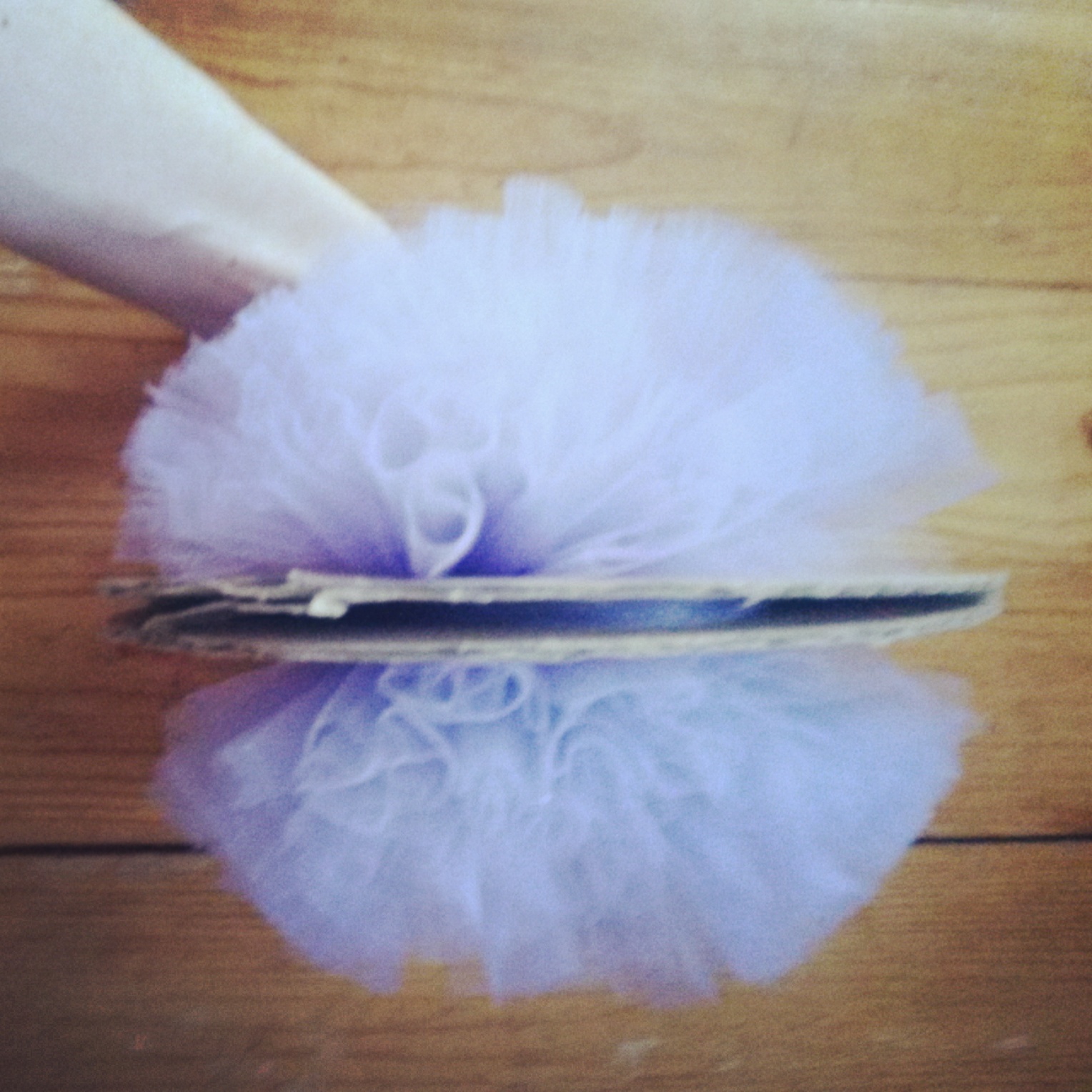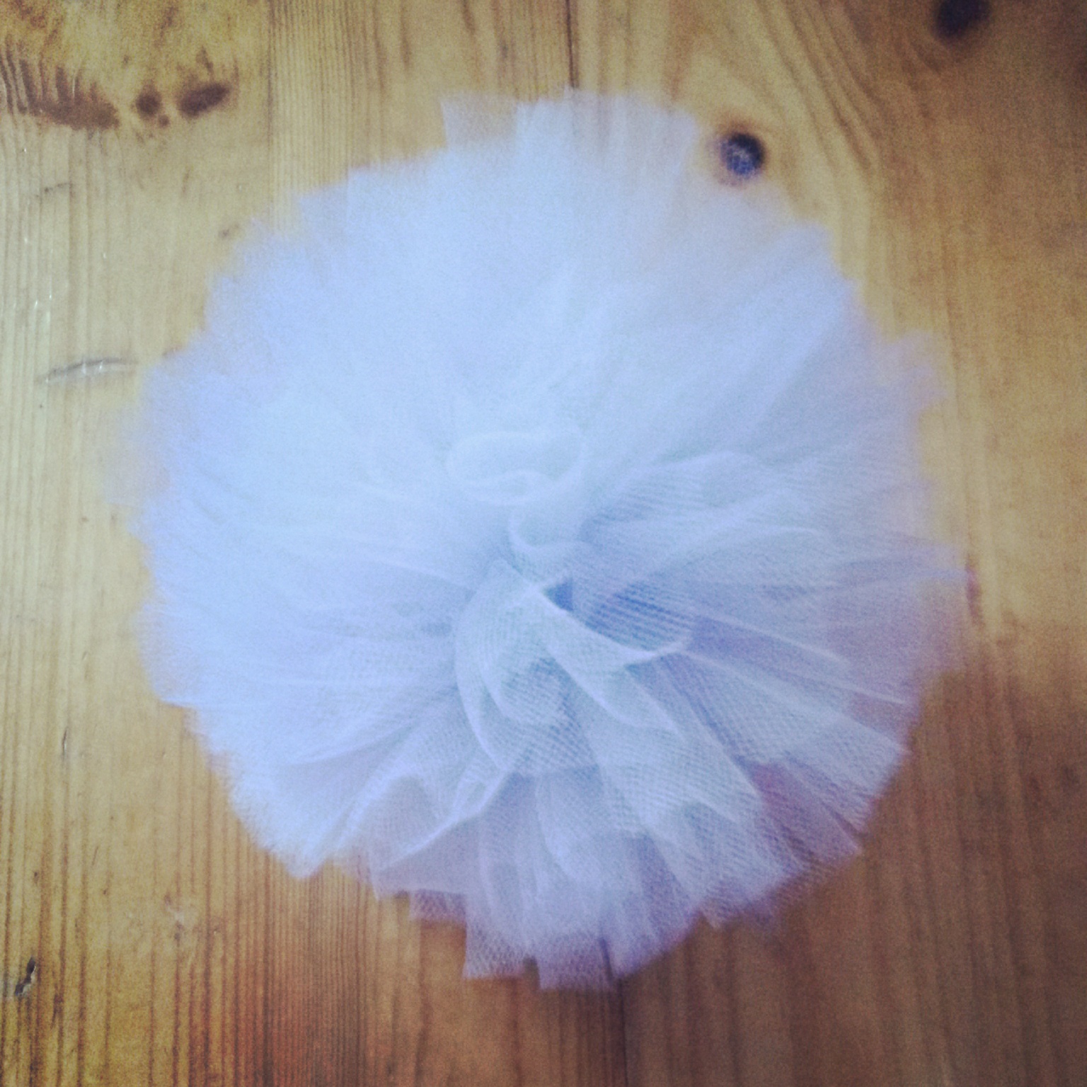 Krok 8: Mamy piękny puszysty pompon 🙂 można przyciąć wystające kawałki tiulu żeby był bardziej równy i krągły.