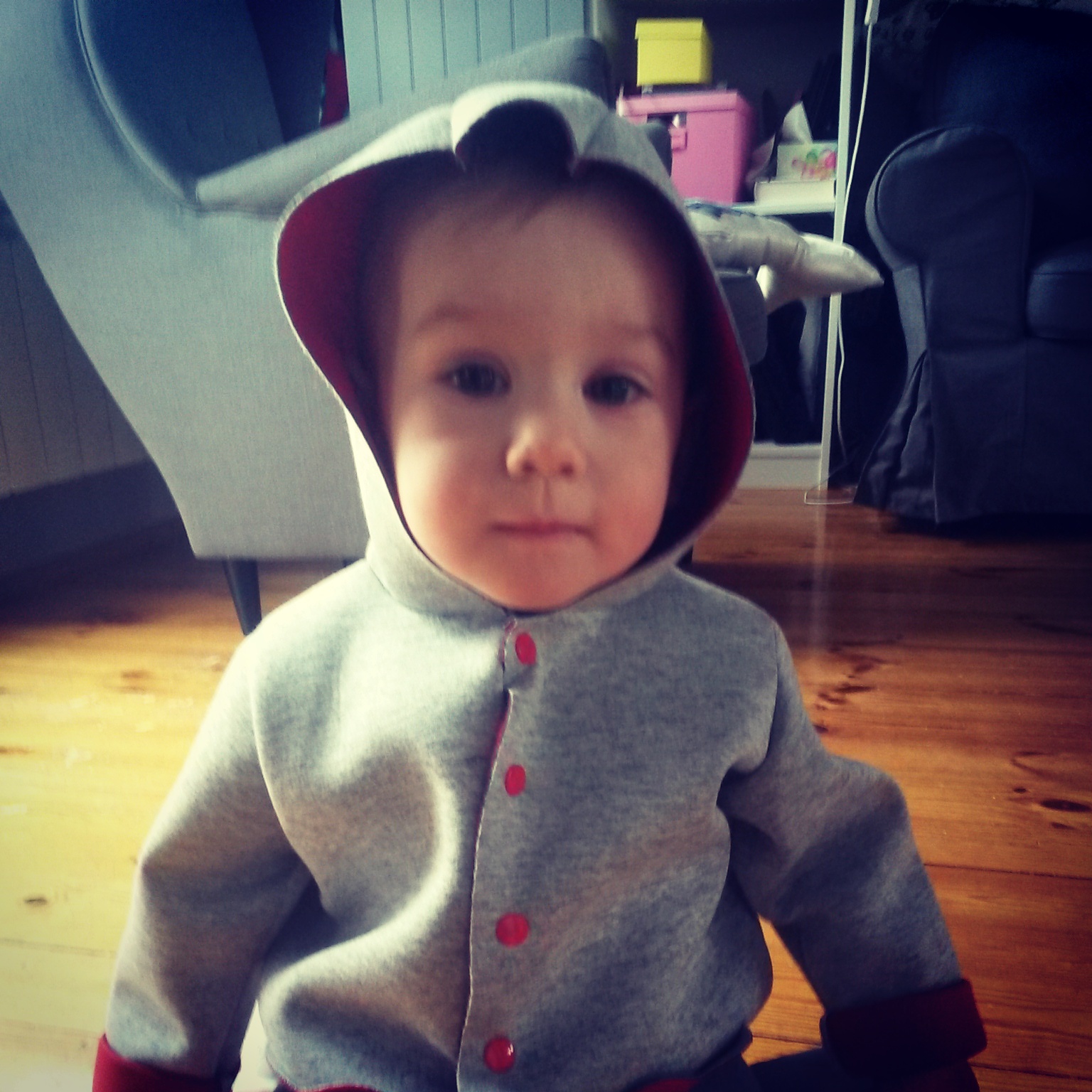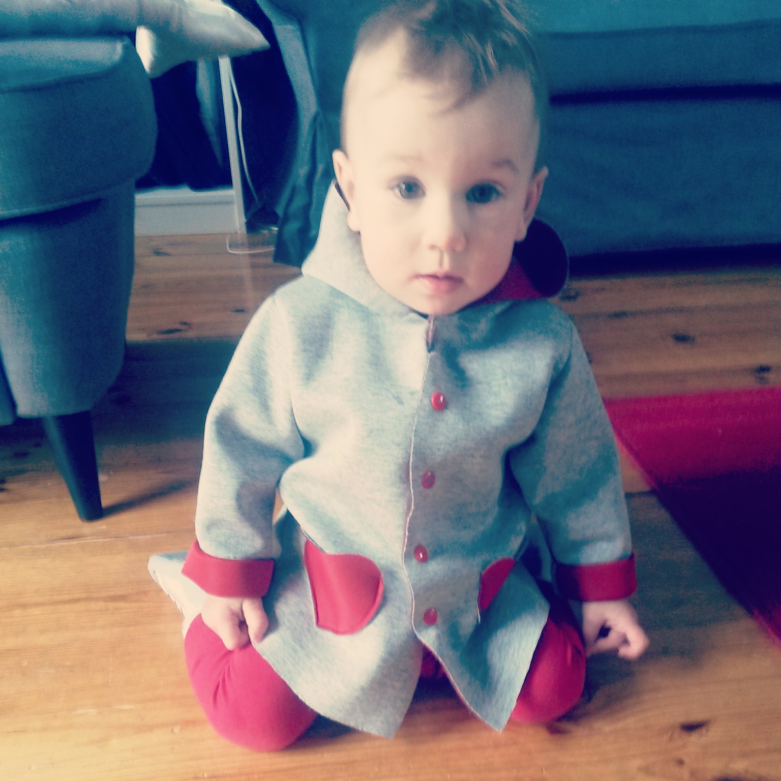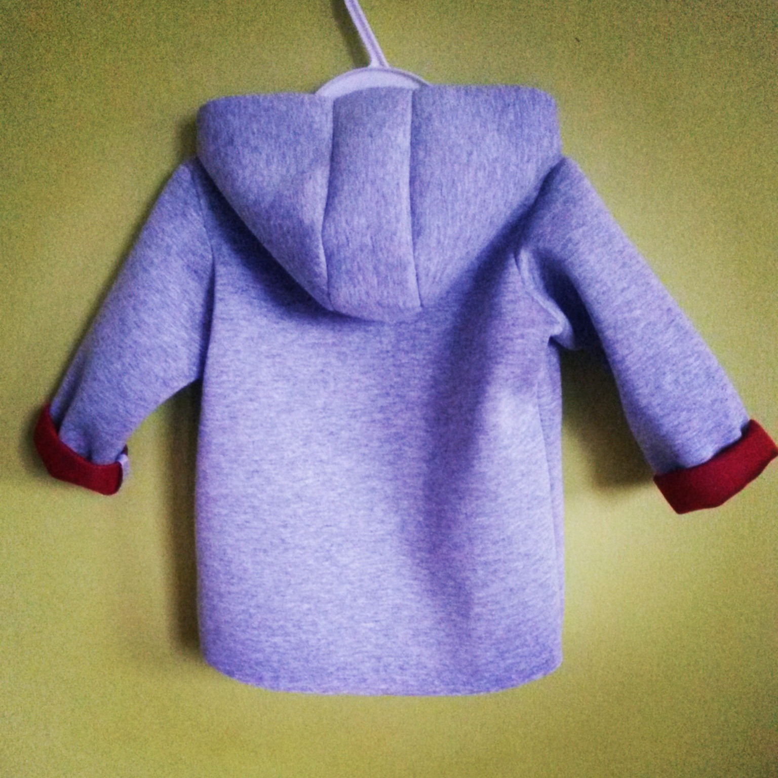 Matka poczuła wiosnę…a to oznacza, że mega wielki kop energetyczny skierował mnie prosto do, lekko ostatnio zakurzonej, maszyny do szycia. I mimo że cała góra materiałów, które kupiłam pod swoim kątem nadal leży w pudłach, zabrałam się za szycie dla córki. Z dwustronnej pianki powstał wiosenny płaszczyk z kapturem i kieszeniami, zapinany na napy. Zachowałam modne ostatnio surowe cięcie , szczególnie że pianka nie ma tendencji do siepania się. Tym razem skorzystałam z gotowego wykroju, który ściągnęłam stąd. Wprowadziłam małe zmiany: wydłużyłam rękawy, żeby móc je efektownie wywinąć oraz przedłużyłam front i tył, bo oryginał za bardzo przypominał kurtkę. Kaptur uszyłam z trzech części zamiast dwóch, żeby ładniej się układał na plecach (pianka jest dość sztywna). No i doszyłam kieszenie (na specjalne życzenie męża w kształcie serc – w końcu to dla dziewczynki). Efekt jest rewelacyjny, Łucja zareagowała żywiołowo na widok płaszczyka (rośnie mi mała modnisia). Teraz pozostaje czekać na cieplejsze dni żeby się lansować na placu zabaw 🙂