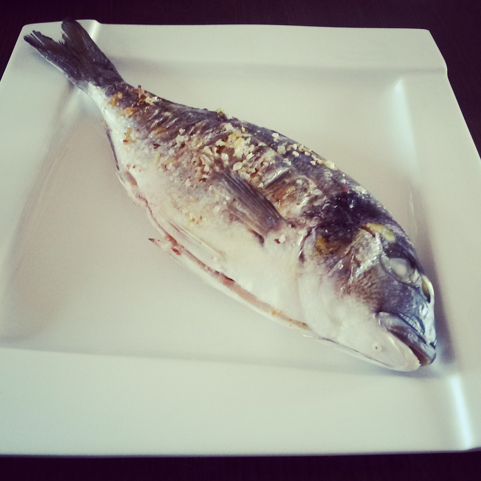 Skórę ryby naciąć w kilku miejscach. Przygotować marynatę: posiekać drobno papryczkę chilli, świeżą miętę, dodać startą skórkę z limonki oraz trochę soku. Utrzeć z gruboziarnistą solą morską, dolać oliwę i hojnie natrzeć rybę. Wsadzić do lodówki na minimum pół godziny aby smaki się przegryzły. Grillować aż ryba będzie chrupiąca na zewnątrz a miękka w środku. W czasie grillowania kilkukrotnie obracać rybę i spryskiwać bądź smarować oliwą. Przydatna jest kratka do ryb – nie musimy się martwić, że podczas obracania ryba straci kształt 🙂