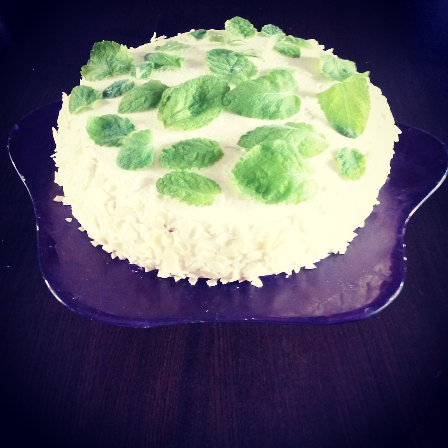Jak dla mnie tort marzenie – niezbyt słodki, nawet lekko kwaskowaty, orzeźwiający. Można go zrobić w wersji dla dorosłych używając do nasączenia blatów likieru miętowego lub dla całej rodziny ponczując tylko herbatą miętową. Mój składał się z dwóch warstw, ale w oryginalnym przepisie z Moich wypieków tort był trzywarstwowy (jakoś za cienkie dla mnie by były trzy blaty).