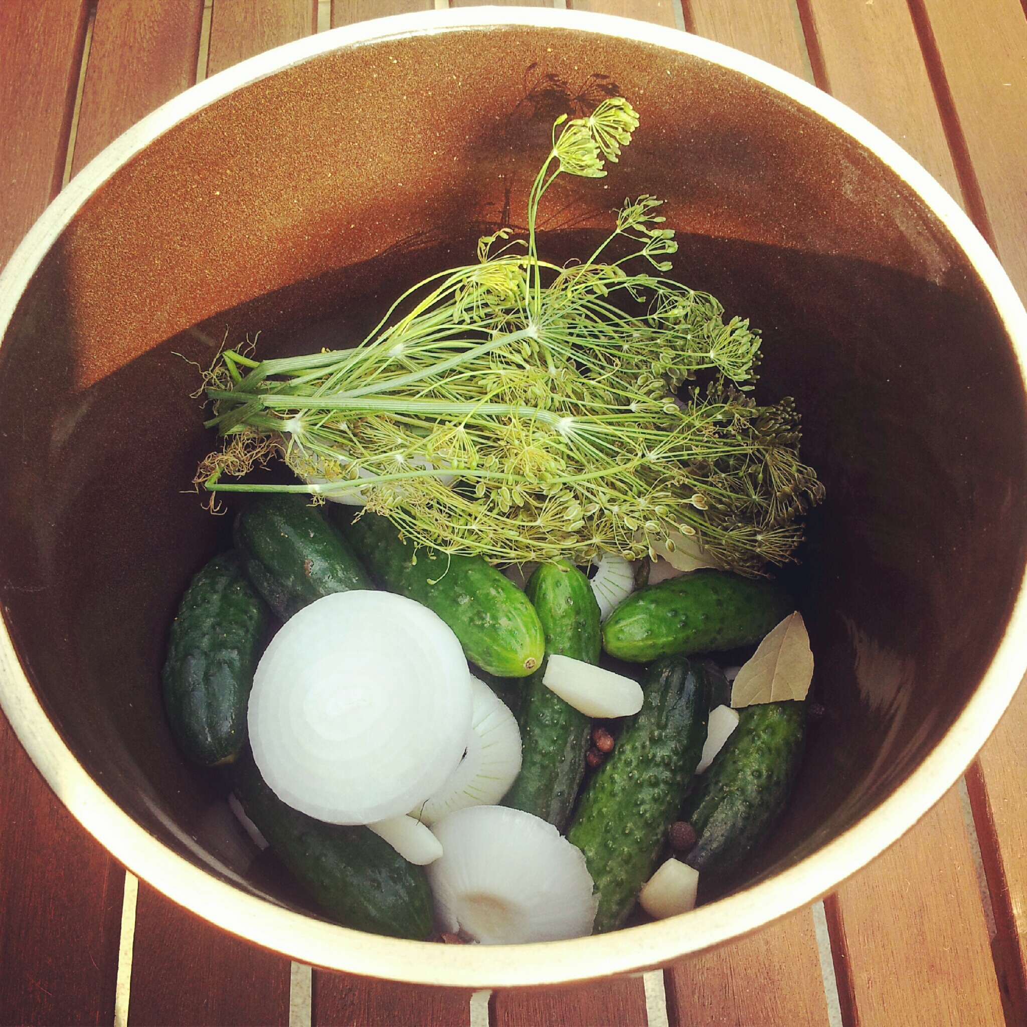 Moja babcia jest mistrzynią wszelakich przetworów i póki ona latem pakuje wszystkie specjały do słoików ja nie muszę się tym zajmować. Jednak nic tak nie pasuje do letnich posiłków jak dobry ogórek małosolny. Co prawda popełniamy z Mężem lekkie świętokradztwo, ponieważ jemy ogórki jak już się dobrze ukiszą i już nie smakują małosolnymi 🙂 Ogórki można nastawić w dzbanie, misce lub garnku. Ja się zaopatrzyłam w gliniany garnek o niedużej wysokości ale dość szerokiej średnicy. Przydatny jest też jakiś obciążnik – u mnie to wyszorowany do czysta i wyparzony kamień.