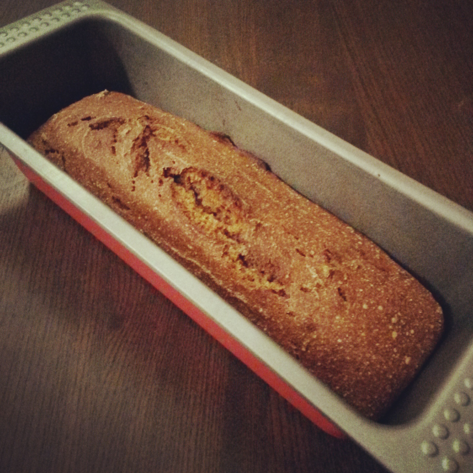 Mój pierwszy chleb na zakwasie 🙂 dlatego też wybrałam bardzo prosty (choć sprawdzony przez koleżankę) przepis, bo nie wiedziałam jeszcze czego się spodziewać. Wyszedł bardzo dobry (we dwójkę pochłonęliśmy cały bochenek w jeden wieczór), wilgotny, dość zwarty. Gdy zabieracie się za pieczenie domowego chleba warto pamiętać o kilku rzeczach. Przede wszystkim będziecie potrzebować gotowego zakwasu (choć możecie spróbować samemu zrobić z tego przepisu), który po dokarmieniu się aktywował. Druga rzecz to forma – może być keksówka (najlepiej z powłoką teflonową), ale jeśli lubicie gadżety i możecie trochę zainteresować to sprawdzi się koszyk do chleba lub garnek rzymski. Ja jako początkująca wybrałam keksówkę, której można używać w temperaturze do 250° C (uważajcie na takie do 200° C). Przyda się jeszcze spryskiwacz, żeby zrobić w pierwszej fazie pieczenia parę, waga kuchenna i mikser z hakiem, dzięki któremu dokładnie wymieszacie gęste ciasto chlebowe. W oryginalnym przepisie była użyta sama mąką żytnia, ja zmieniłam jej część na pszenną pełnoziarnistą. I jeszcze jedna ważna rzecz – chleb na zakwasie wymaga dużo czasu, najlepiej rozplanować sobie jego przygotowanie w następujący sposób: rano wyciągamy uśpiony zakwas z lodówki, po kilku godzinach gdy będzie już w temperaturze pokojowej, karmimy go mieszaniną mąki i wody (w takich samych proporcjach), mieszamy i zostawiamy znowu na kilka godzin aby się aktywował. Wieczorem przygotowujemy ciasto chlebowe, zostawiamy na noc na pierwsze rośnięcie, rano przekładamy do formy i znowu zostawiamy do wyrośnięcia. Dopiero wtedy zabieramy się za pieczenie czyli chleb mamy gotowy po południu – na kolację lub śniadanie dnia kolejnego (żytni chleb będzie nawet smaczniejszy upieczony dzień wcześniej). Resztę zakwasu możemy od razu schować do lodówki (maksymalnie może stać 14 dni) lub po dokarmieniu zostawić w temperaturze pokojowej aby znowu urósł i wykorzystać go szybko do pieczenia kolejnego chleba 🙂 Wtedy możecie zacząć szykować ciasto rano, żeby mieć gorący na śniadanie następnego dnia: pierwsze rośnięcie w ciągu dnia, następne wydłużamy do 8-12 godzin (w nocy) i wstawiamy do pieca skoro świt 😉