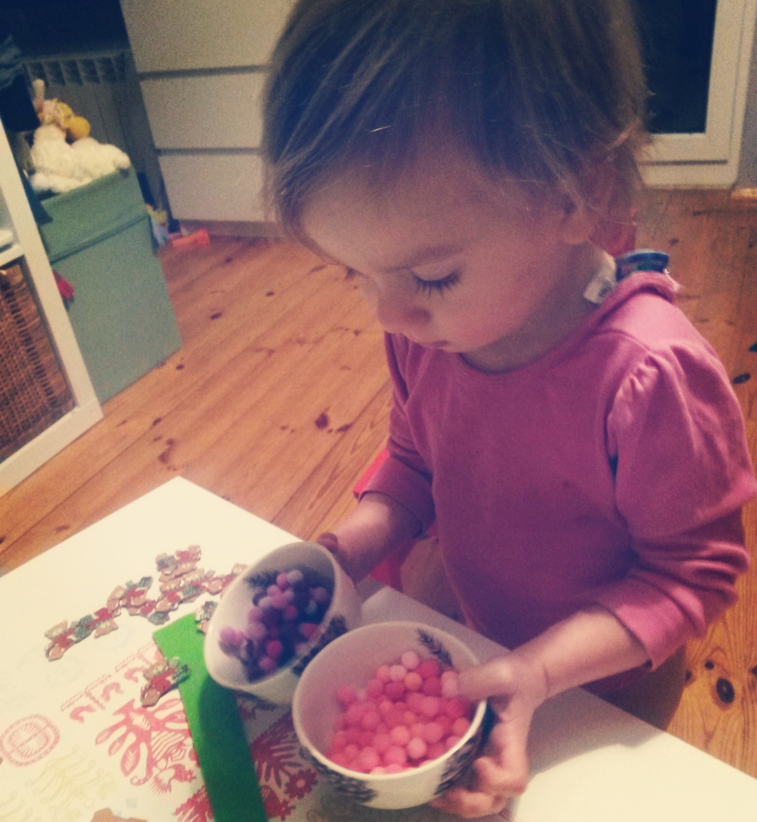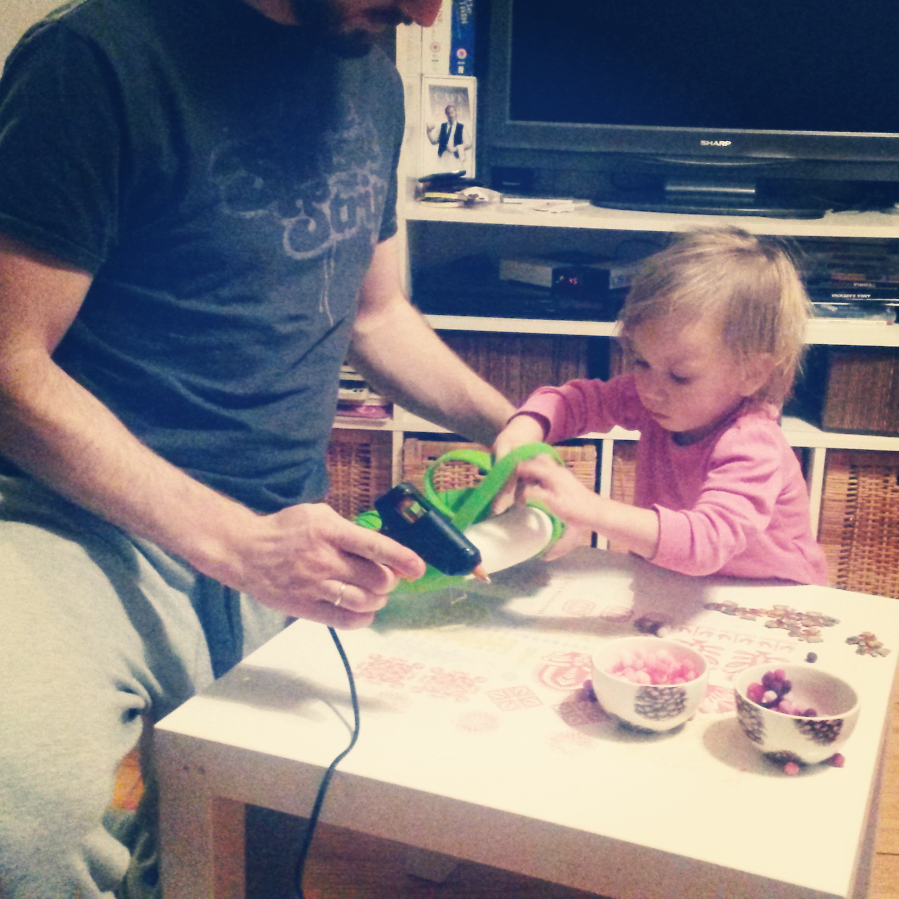 Posiadanie prawie dwuletniego dziecka niesie dużo radości w okresie przedświątecznym 🙂 Wreszcie się doczekaliśmy wspólnego przygotowywania dekoracji – na pierwszy ogień poszedł wieniec. Nasz powstał ze styropianowegp okręgu, przyklejonego do niego filcu pociętego na ok 3 cm szerokości paski i małych kuleczek filcowych. Do klejenia elementów użyliśmy kleju na gorąco. Więcej pomysłów jak wykonać wieniec z dzieckiem znajdziecie na Pinterest wpisując np. christmas wreaths kids can make.
