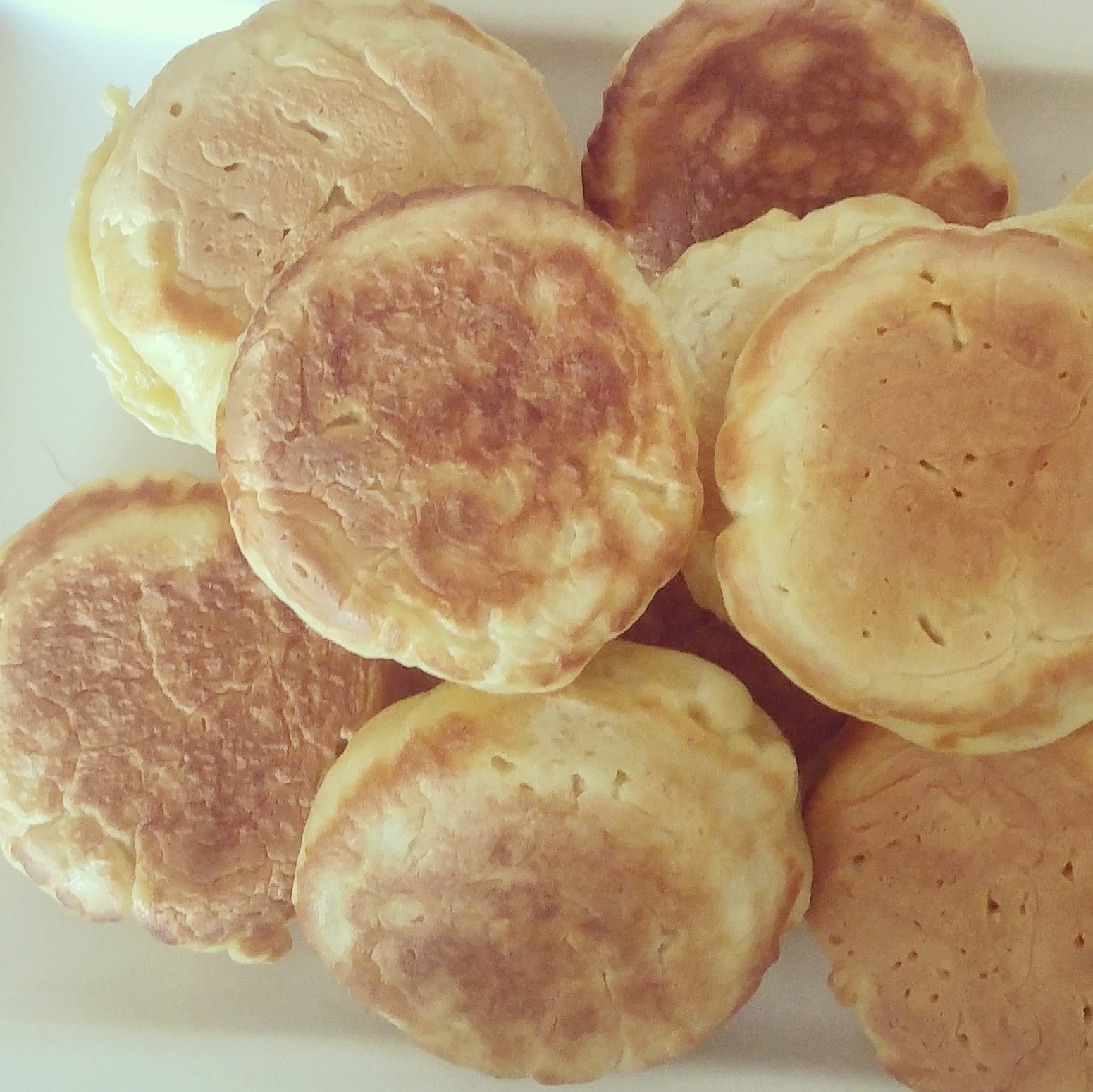 Patelnię rozgrzać, posmarować masłem i nakładać porcje ciasta w odstępach od siebie (placuszki będą rosły). Smażyć na złoty kolor, po czym przełożyć na drugą stronę i dalej smażyć aż będą rumiane.