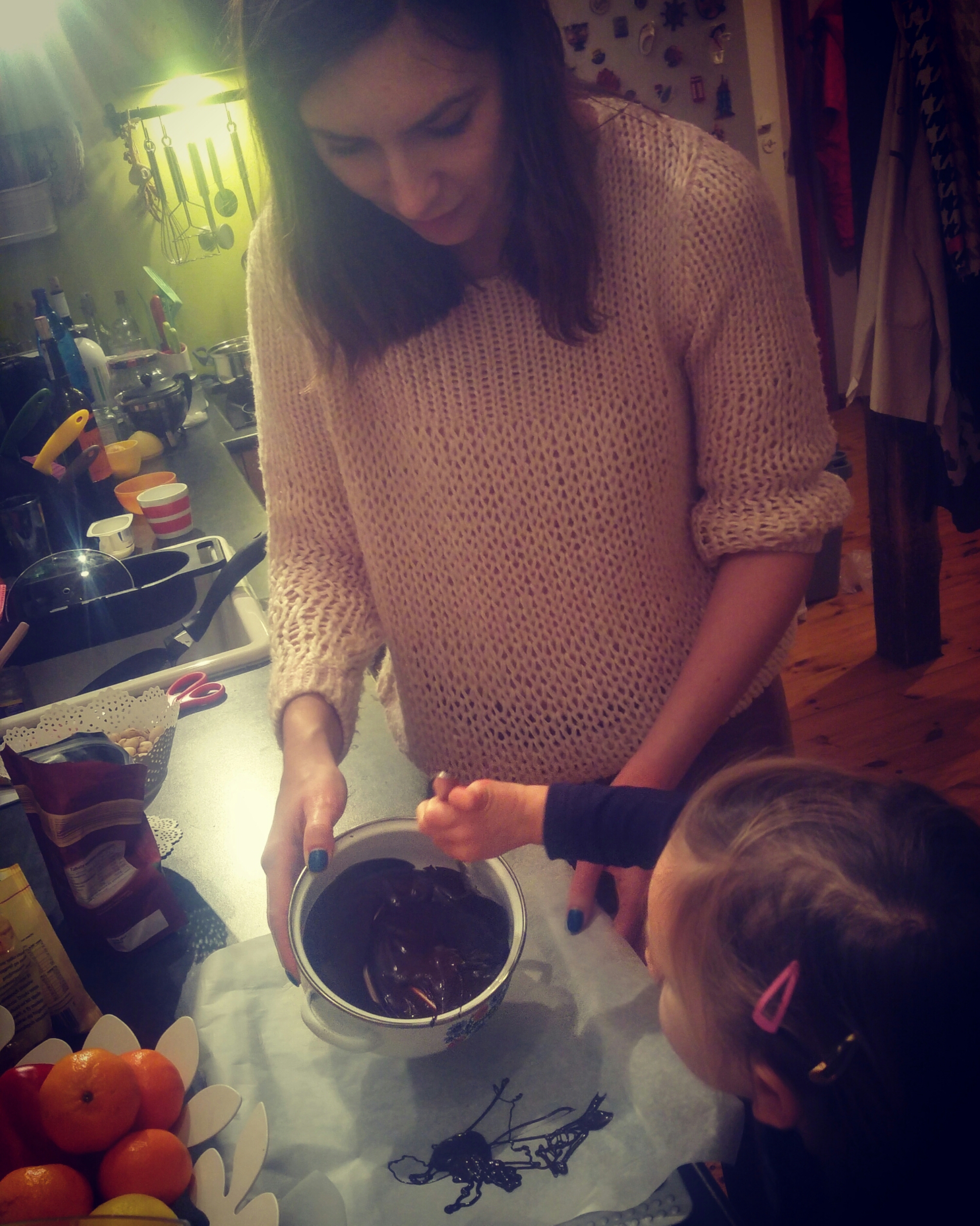 W ten sam sposób można zrobić czekoladki w foremkach tylko czas oczekiwania na stężenie będzie dłuższy 🙂
