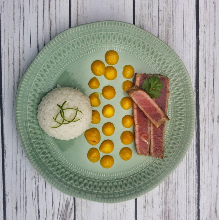 Nie tylko wołowina jest najlepsza na wpół surowa, ta sama zasada tyczy się też tuńczyka. Dlatego moje steki z tej szlachetnej ryby miały kontakt z patelnią tylko chwilę, tak żeby wierzch zrobił się chrupiący, ale środek pozostał miękki i cudownie czerwony. Świetnym dodatkiem do tuńczyka okazał się pikantny sos z mango oraz kokosowy ryż. Jest to danie, które zachwyci najwybredniejszych a do tego robi się w mniej niż pół godziny.
