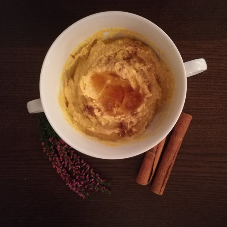 Humus wymieszać z dynią, cynamonem i syropem klonowym.
