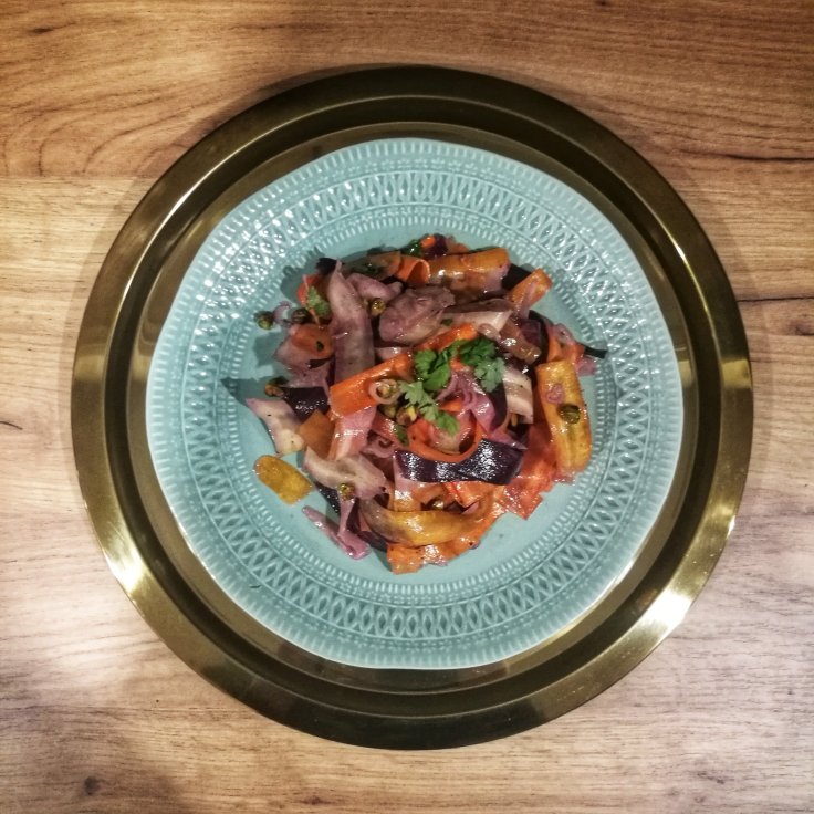 Po pierwsze primo sałatka wyjdzie tak samo dobrze ze zwykłych marchewek, ale jeśli uda Wam się dostać kolorowe danie będzie po prostu ładniejsze 🙂