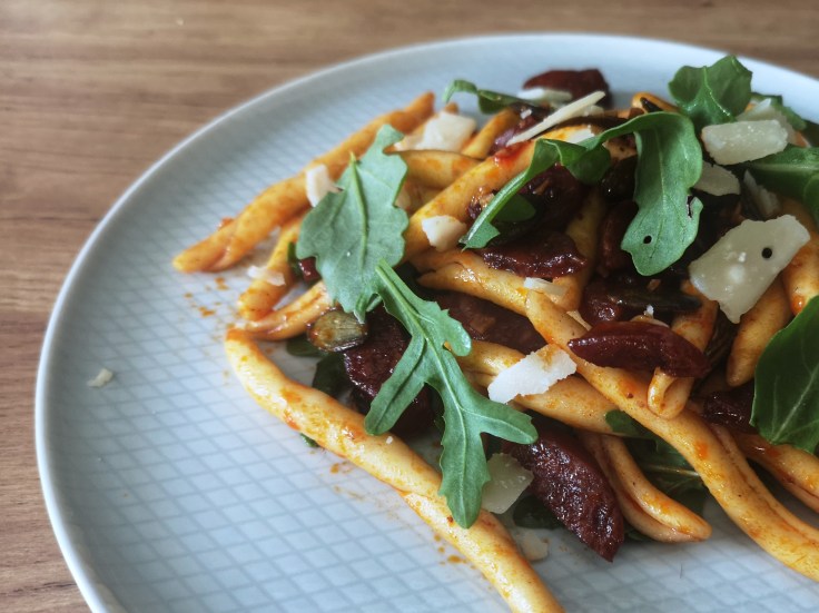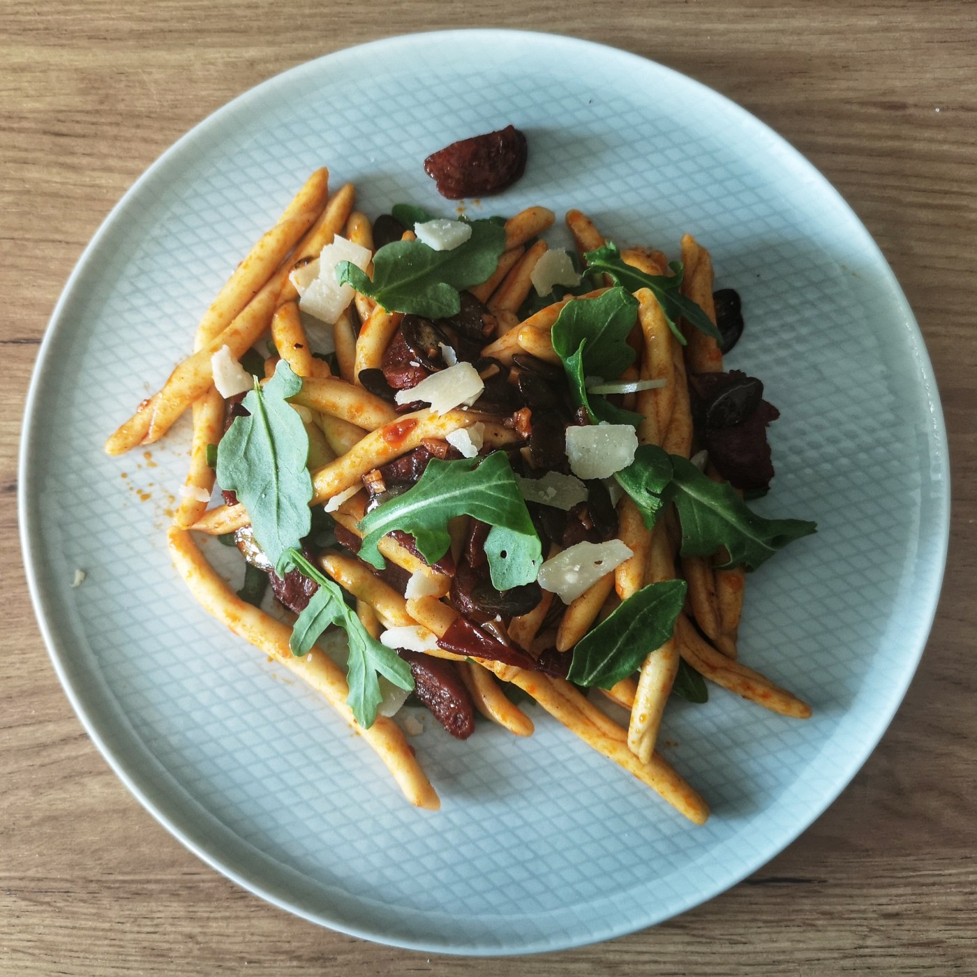 Pikantne chorizo karmelizowane w syropie klonowym i podrasowane wytrawnym porto – to się nie może nie udać 😉 szczególnie jak podamy je z makaronem i serem manchego na szybki obiad lub kolację.