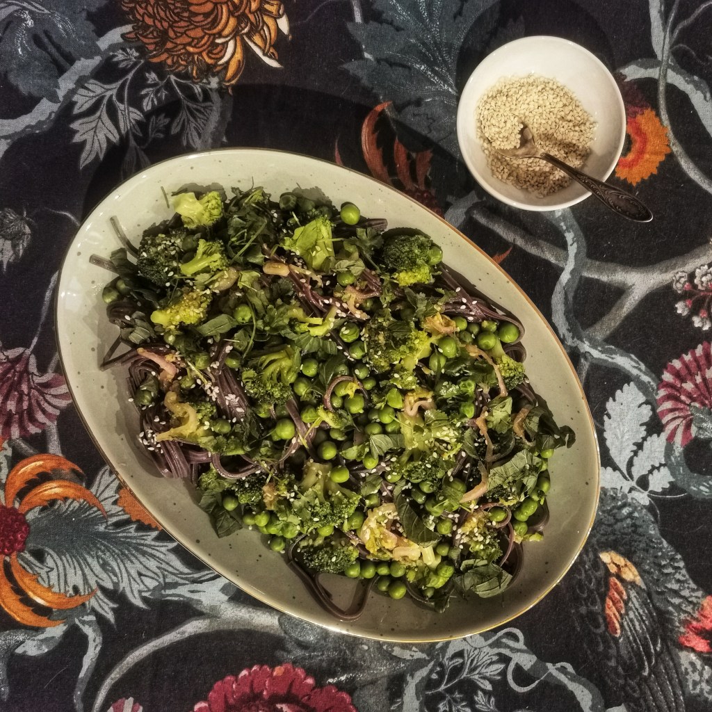 Wiosna na talerzu, pełna orientalnych smaków i kolorów. W sezonie korzystamy ze świeżych warzyw, teraz użyłam mrożonych. Przepis podpatrzony u Jamiego Olivera.