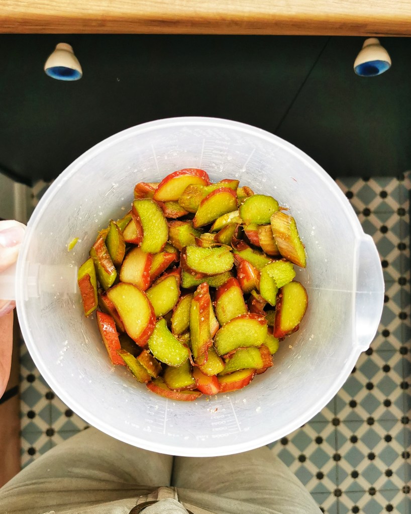 - 400 g rabarbaru (obranego i pokrojonego w nieduże kawałki)