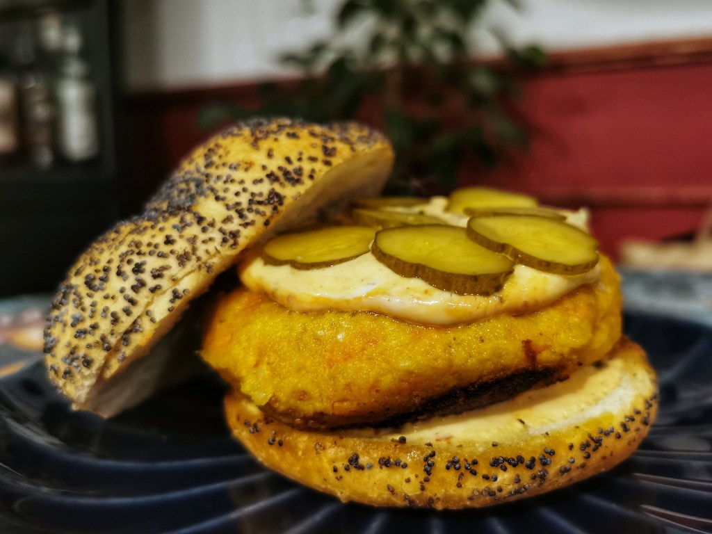 Bardzo smaczne burgery z marchewki i ciecierzycy podkręcone sezamem. Wegetariańskie, ponieważ zawierają jajko – zachęcam jednak wegan do eksperymentów, myślę że spokojnie da się znaleźć jakiś zamiennik. Burgery wyjdą zarówno z grilla jak i z patelni. Ja swoje podałam w bułce z rukolą, cebulą i chrupiącym małosolnym.
