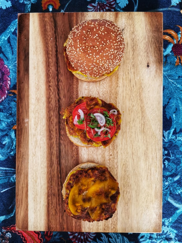 Po nastawieniu kiszonek zostało mi pół kalafiora więc postanowiłam go użyć do obiadu. I wraz z dodatkiem ziemniaków udało mi się wyczarować wegańskie burgery z orientalnym smakiem curry. I trzeba im przyznać, że smakują jak indyjski street food.