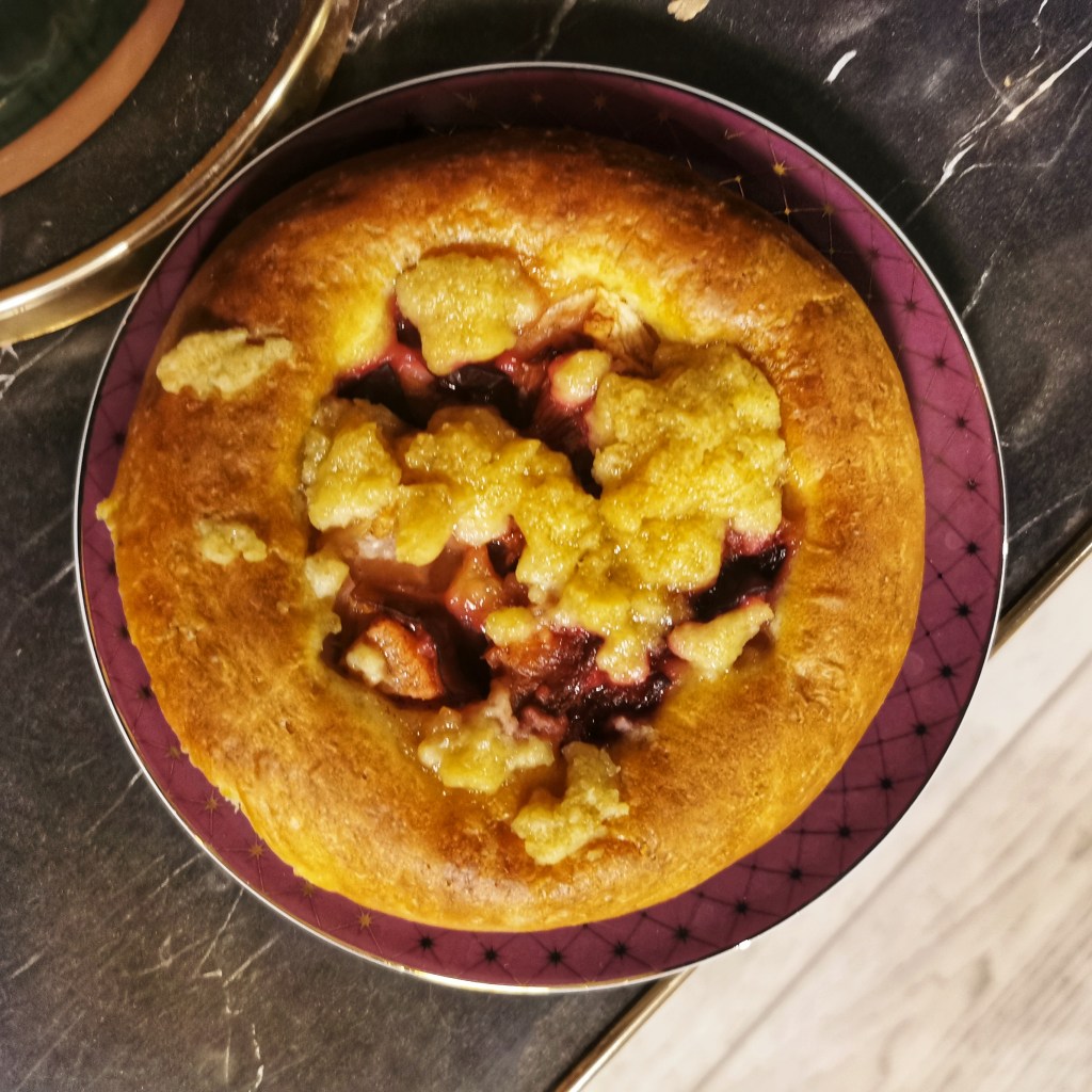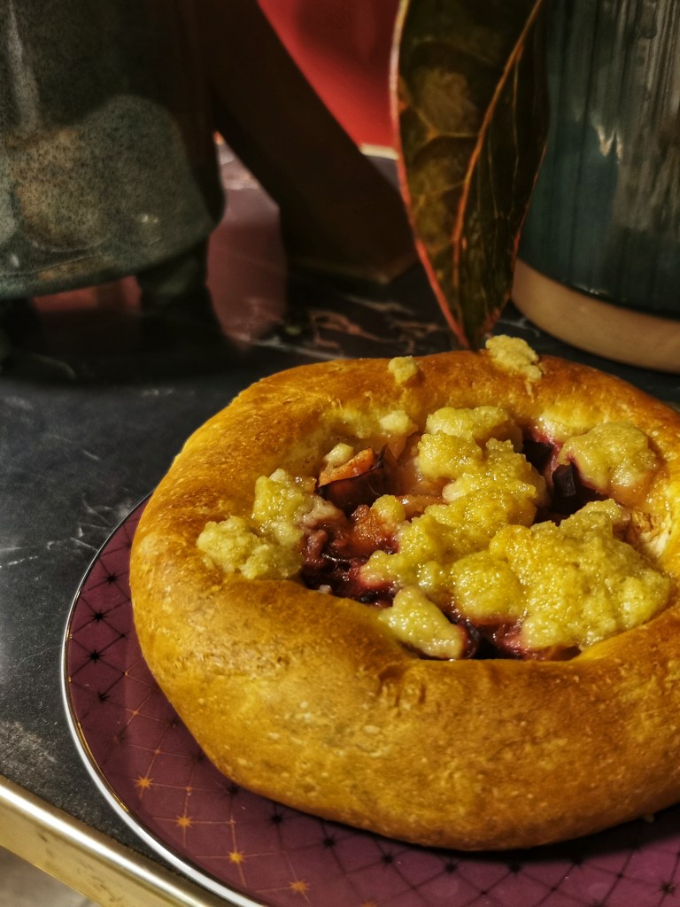 Nie mogłam się zdecydować, które owoce wykorzystać do ciasta więc postanowiłam użyć i śliwek i jabłek i gruszek. Ale spokojnie pasowałyby również figi i maliny. Przepis na ciasto drożdżowe na bułeczki pochodzi z bloga mojewypieki.com