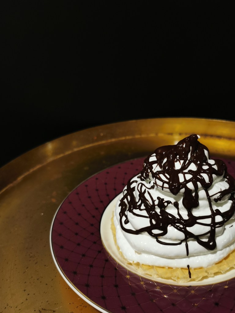 Smak dzieciństwa i najlepsza myśl gastronomiczna PRLu – ciepłe lody. Puszysta bezowa pianka, podana w wafelku i polana czekoladą.