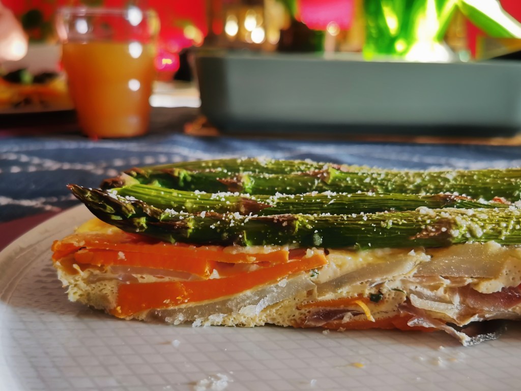 Tradycyjny hiszpański omlet – tortilla wymaga powolnego przygotowania, ze względu na ziemniaki, dlatego idealnie nadaje się do zapiekania w piekarniku. Dzisiaj proponuję wam miks zwykłych ziemniaków i batatów oraz dodatek sezonowych szparagów.