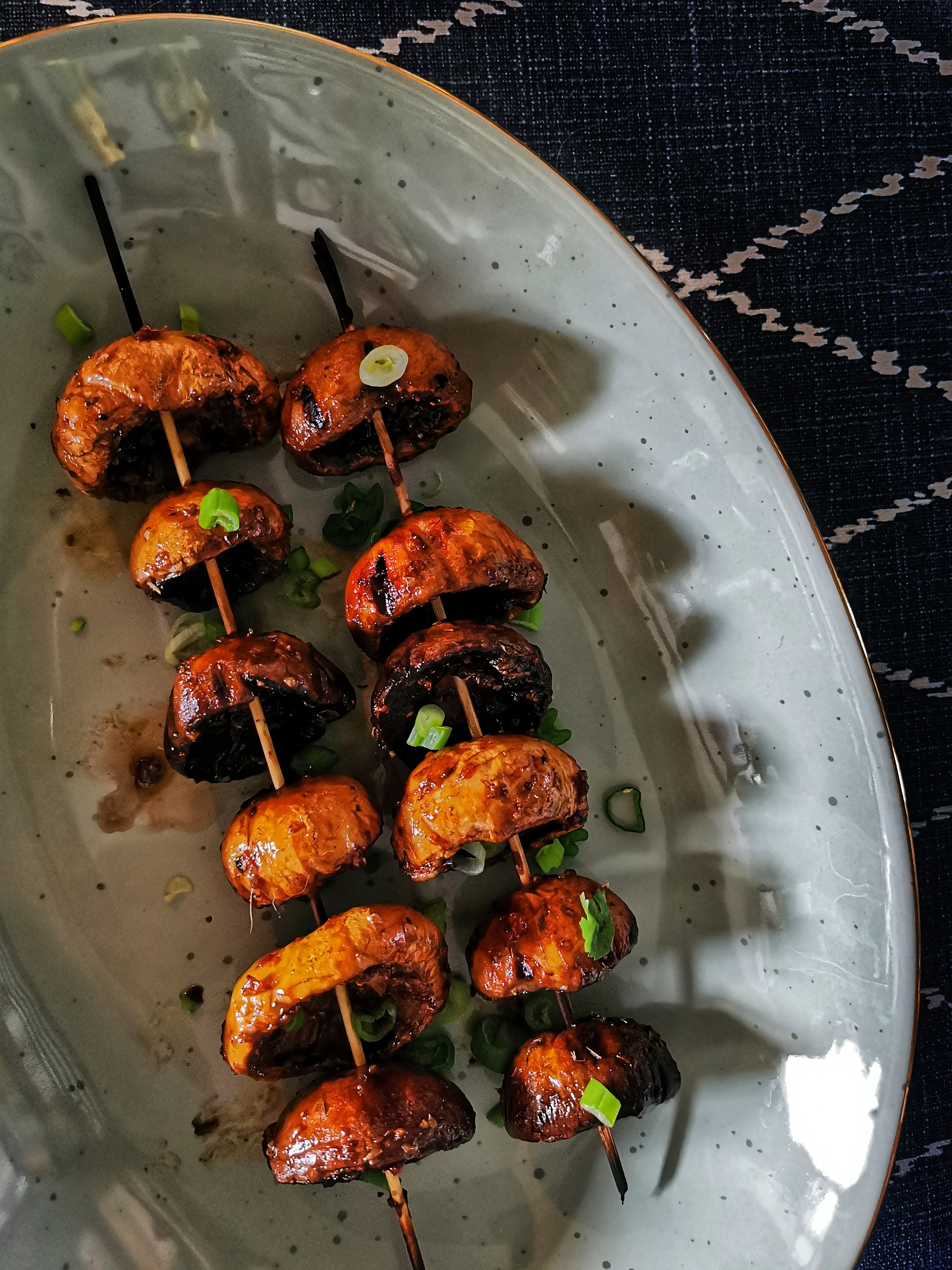 Genialny pomysł na marynatę do pieczarek – można w ten sposób zrobić burgery z dużych kapeluszy portobello lub szaszłyki ze zwykłych. Można je przygotować na grillu lub na patelni.