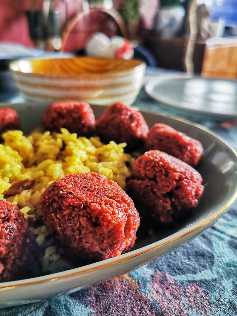 Falafele to wspaniała baza by przemycić więcej warzyw poza samą cieciorką. Robiłam już z dodatkiem pieczonego kalafiora, dzisiaj wersja z burakiem.