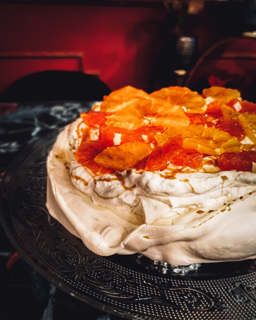 Cudowne połączenie zimowych smaków – podrasowana cynamonem beza, karmel z grzanego wina i soczyste pomarańcze. Bezę jak zwykle polecam upiec wieczorem poprzedniego dnia, żeby porządnie ostygła (i wyschła) w piekarniku.