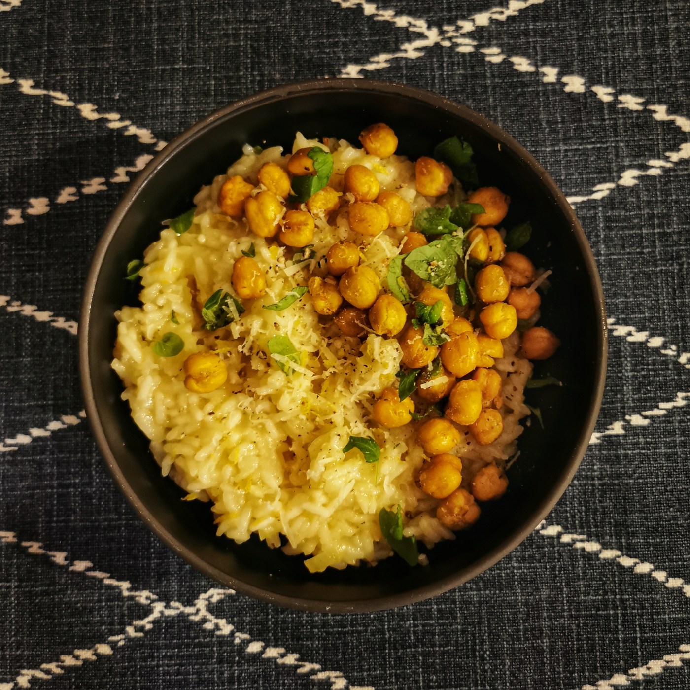 Kremowe, cytrynowe risotto to wspaniały rozgrzewający posiłek, a dodatek chrupiącej, ziołowej ciecierzycy jeszcze bardziej podkręca kubki smakowe. Co będzie potrzebne: 1 nieduża cebula 3 ząbki czosnku Masło klarowane (lub oliwa) 250 ml ryżu do risotto (np. arborio) 2 łyżki startej... Continue Reading →