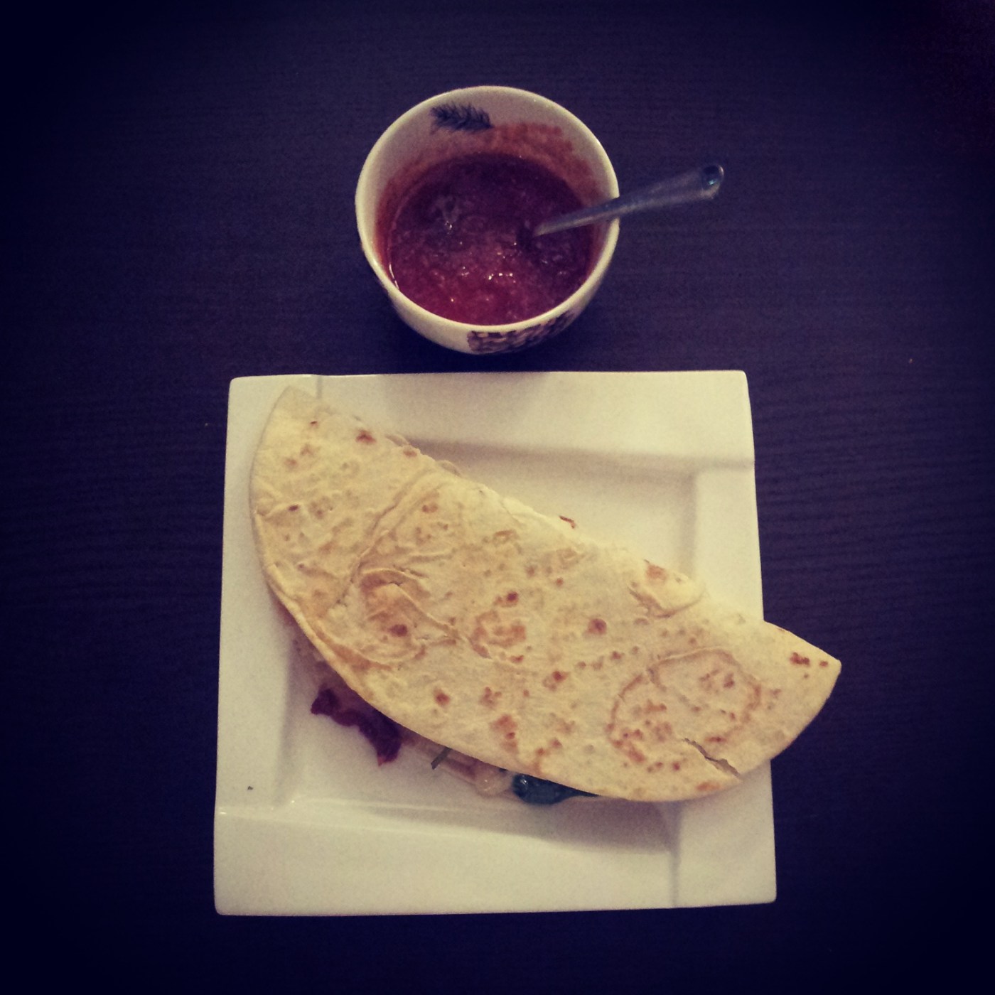 Dziecko śpi a rodzice łasuchują 🙂 włoska piada z mozzarellą, suszonymi pomidorami, szynką prosciutto, gorgonzolą, szpinakiem i salami…opcja dla leniwych, bo piada gotowiec (ach, ten tydzień włoski w lidlu) 😛 no ale kiedyś trzeba mieć czas na szycie 😉