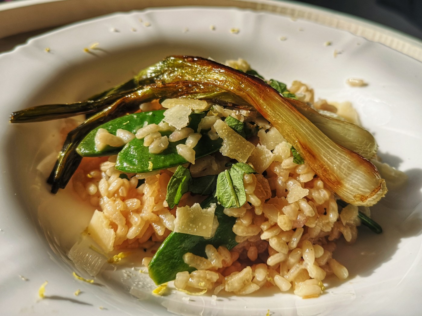 Sezon na zielone warzywa w pełni. To risotto będzie tak samo dobre z groszkiem cukrowym jak i ze szparagami lub bobem. Co będzie potrzebne (na 2 porcje): 1 mała cebula czerwona 2 ząbki czosnku 2 łyżki masła klarowanego 120 g... Continue Reading →