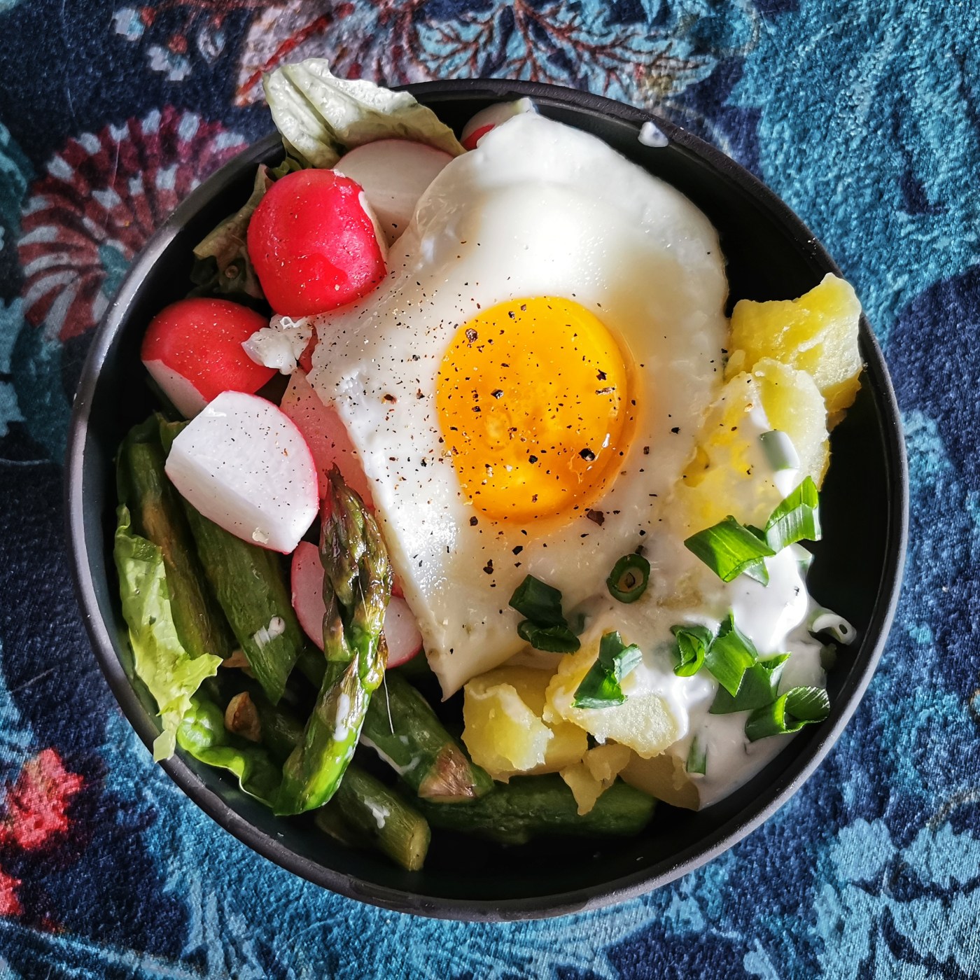 Wiosenna wersja popularnego budda bowl - z nowalijkami i delikatnym jajkiem sadzonym. Wszystko co najlepsze wiosną - młode ziemniaki, rzodkiewki, szparagi, sałata i szczypiorek. Chrupiące, świeże i zdrowe. Co będzie potrzebne: 200 g młodych ziemniaków 6 rzodkiewek8 szparagówKilka liści kruchej... Continue Reading →