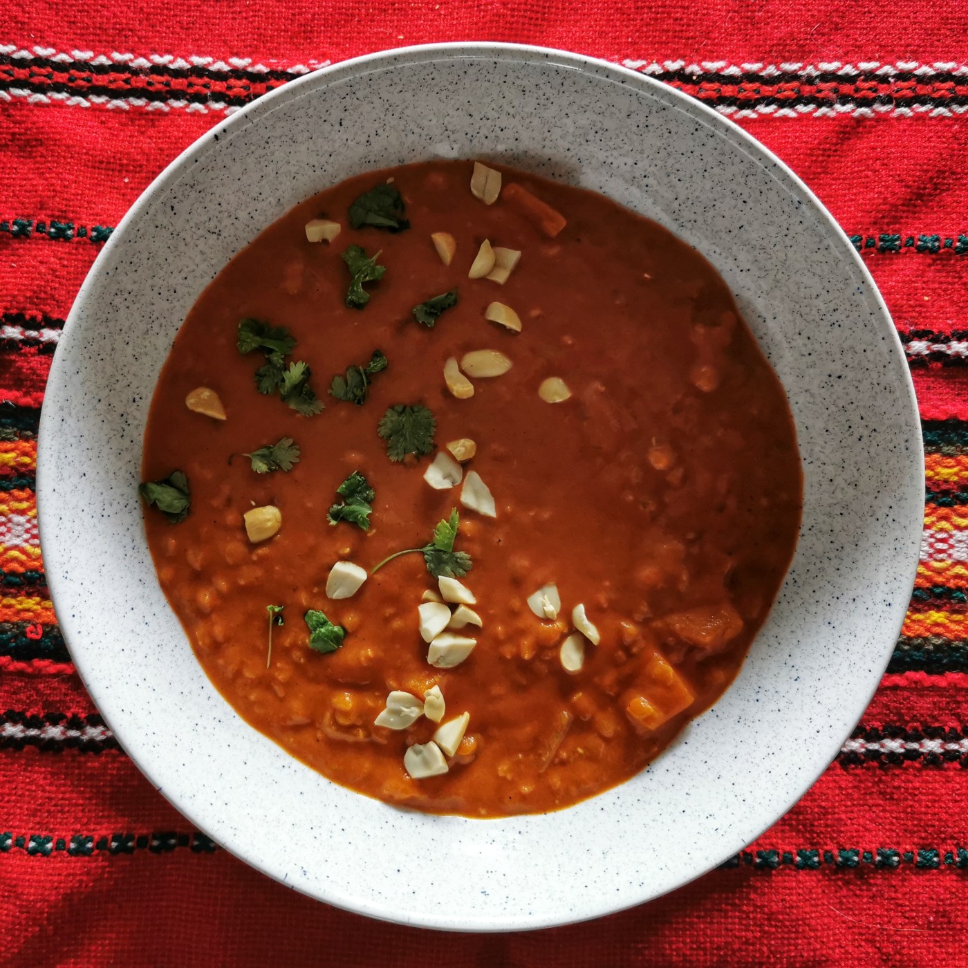 Inspirowana kuchnią zachodniej Afryki gęsta zupa z batatami i soczewicą. Wyjątkowy smak zawdzięcza mieszance przypraw, mleku kokosowemu oraz masłu orzechowemu. Co będzie potrzebne: 2 łyżki oleju kokosowego 1 cebula2 ząbki czosnku 2 cm kawałek imbiru 1 łyżeczka cynamonu 1 łyżeczka... Continue Reading →
